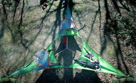 在野外露營時,驢友們也或許會遇到些麻煩事兒,比如,帳篷被水浸濕、休息時爬進(jìn)一些不明生物啥的,這該情何以堪呢?? Tentsile是一家來自英國倫敦的戶外裝備公司,它家推出的一款名為“Stingray”的創(chuàng)意帳篷,可掛在空中使用,給人們一種奇特的“懸浮”戶外體驗!